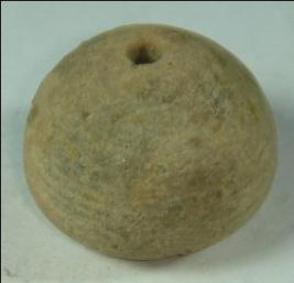 | Description / विवरण | Perforated terracotta bead, betel nut in shape with depression at the base having striation marks. |