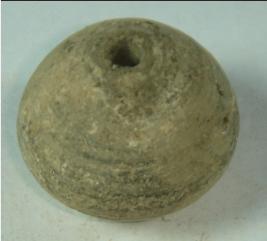 | Description / विवरण | Perforated terracotta bead, pot shaped having mild striation marks at the centre. |