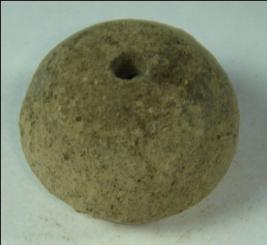 | Description / विवरण | Coarse perforated terracotta bead, betel nut in shape. |