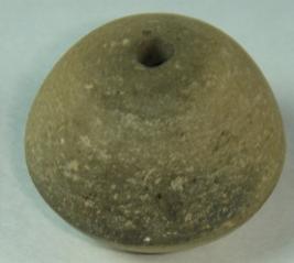 | Description / विवरण | Ill fired, perforated terracotta bead having pot shaped body with a circular deep depression on top and striation marks are clearly visible on the body. |