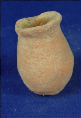 | Description / विवरण | Coarse terracotta vessel - tiny jar with low neck, cylindrical body, rim is averted and thick. The base is footed and circular. |