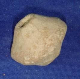 | Description / विवरण | Terracotta bead, bi-convex in shape with a transverse perforated hole in centre to pass the string. |