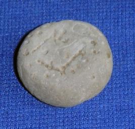 | Description / विवरण | Terracotta bead, flat and circular in shape, having a incised hole in one surface, while the other surface has some incised designs. |
