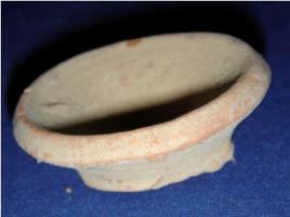 | Description / विवरण | Terracotta tiny lamp in shape of bowl with footed base, flayed body and a thick and averted rim. Earthly incrustation all over. |