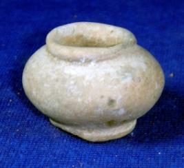 | Description / विवरण | Tiny terracotta pot, with bulbous body and two hollow ends, with thin rim, one of it is slightly broken. |