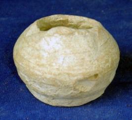 | Description / विवरण | Terracotta tiny pot, rim part is broken, bulbous body with carination at the middle, round flat base with string marks. |