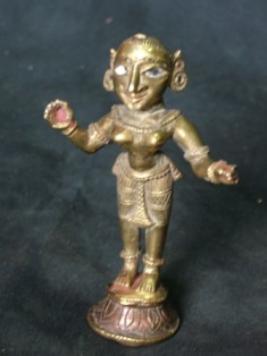 | Description / विवरण | This is an image of Hindu woman with white enamel lid eyes. She is wearing decorated dress with ornaments. |