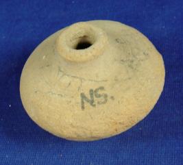 | Description / विवरण | Tiny terracotta pot, coarse, with small averted rim, circular body and circular flat base, close striation marks are present on the body. |