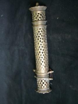 | Description / विवरण | This is a pen case kamaldan . It has perforated geometrical design all over and both ends are in floral pattern. |