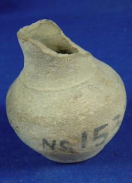 | Description / विवरण | Terracotta vessel - tiny pot, coarse and ill fired having broken featureless rim, circular body and flat circular base. |