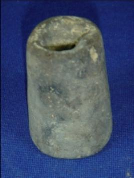 | Description / विवरण | Long conical terracotta Bead with a hole at centre |
