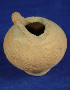 | Description / विवरण | Terracotta pot with round and flat base, the body is round, striation marks on neck and almost all the part of rim is broken. |