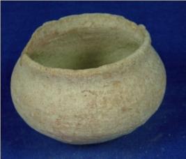 | Description / विवरण | Terracotta tiny pot having slightly long neck with averted broken rim, bulbous body and flat oval base. |
