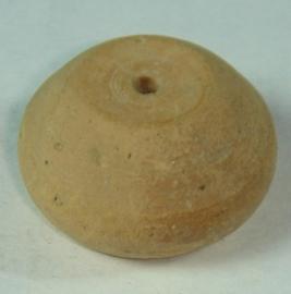 | Description / विवरण | Plain, perforated terracotta bead, betel nut in shape. The top is flat and a mild carination at the middle of the body. |