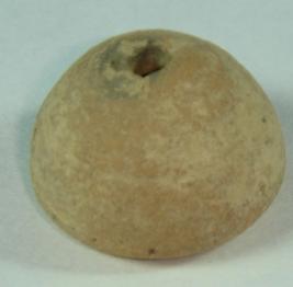 | Description / विवरण | Plain, perforated terracotta bead, betel nut in shape. There are two small pits at the base. |