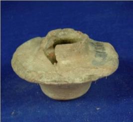 | Description / विवरण | Coarse terracotta vessel - probably tiny pot, with narrow mouth, feature less rim, short neck, flayed upper body and broad, circular base. Part of the mouth and body are broken. The body is highly coordinated. |