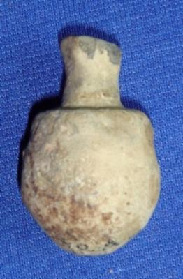 | Description / विवरण | Coarse, terracotta vessel, tiny pot in shape of surahi, having pointed base, round body, high neck and narrow mouth. The rim is averted and it is crudely finished. |