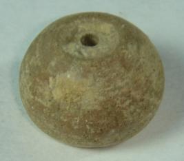 | Description / विवरण | Perforated terracotta bead, betel nut in shape with flat tip and mild carination at the body. |