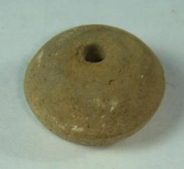 | Description / विवरण | Plain, perforated terracotta bead, betel nut in shape, with depression at the base. The lower body has double mild carination. |
