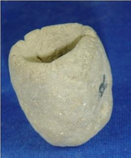 | Description / विवरण | Coarse terracotta vessel - probably tiny pot, in the shape of drinking glass. It has featureless rim, cylindrical body and round base. It is hand made and crudely finished. |