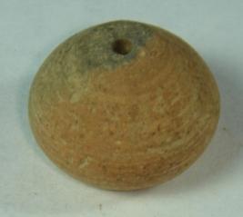 | Description / विवरण | Plain, perforated terracotta bead, betel nut in shape. The tip is flat and mild striation marks are visible all over. |