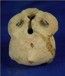 | Description / विवरण | Coarse, ill fired tiny spouted pot with slightly oval base, round body with a spout and tapering top at both sides of which, two handles are seen, probably used for holding purpose. Its mouth and upper part of body is partially broken. It was probably broken into two pieces but restored later. |
