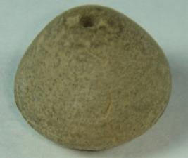 | Description / विवरण | Pot shaped, perforated terracotta bead with a circular deep depression on top. Clay incrustation all over. |