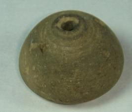 | Description / विवरण | Perforated terracotta bead, betel nut in shape, with a depression on the centre, close striation marks are seen on the body. |