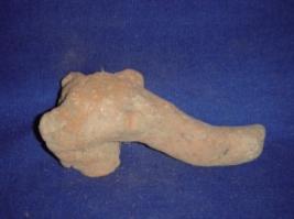 | Description / विवरण | Terracotta head of an elephant, eyes are bulging and trunk is prominent. Tusks, ears and rest of the body is missing. |