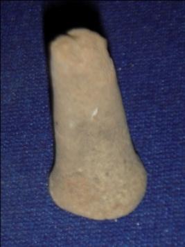 | Description / विवरण | Terracotta Games men betel nut shape having blunt end and flat base. |