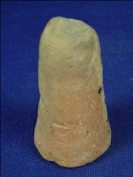 | Description / विवरण | Terracotta Games men , cylindrical in shape with flat circular ends, one end has a floral design. |