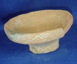 | Description / विवरण | Plain, pedestal terracotta lamp with transverse perforation at base, probably meant to tie several lamps in a row. |