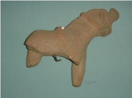 | Description / विवरण | Indigenous figurine of a terracotta horse. A Protruding top and reins are visible. The mouth, right fore limb and hind limbs are missing only part of hind limb is there. |