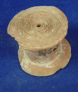 | Description / विवरण | Terracotta spindle whorl with cylindrical body and broad flat-ends, having perforated hole and incised circular lines on broad flat ends, it was used for wrapping thread. |