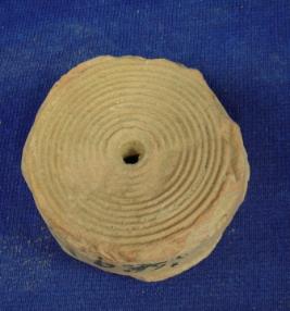 | Description / विवरण | Terracotta spindle whorl with cylindrical body and broad flat-ends, having perforated hole and incised circular lines on broad flat ends, it was used for wrapping thread. |