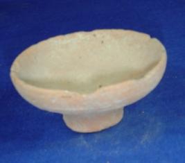 | Description / विवरण | Plain, terracotta coarse vessel - pedestal lamp with a transverse hole at the base, probably meant to keep several lamps in a row. It is shallow and has flaying sides. The rim is slightly flaked off. |