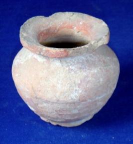 | Description / विवरण | Terracotta pitcher having broken averted rim, broad mouth, bulbous body with sparse striation marks and flat circular base. Surface is rough and peeling off. |