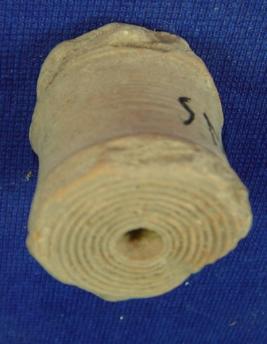 | Description / विवरण | Terracotta spindle whorl with cylindrical body and broad flat-ends, having perforated hole and incised circular lines on broad flat ends, it was used for wrapping thread. It is partly broken. |