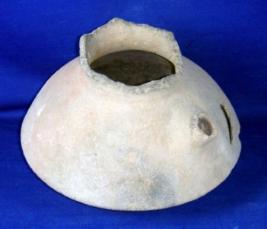 | Description / विवरण | Terracotta spout vessel, ill fired, coarse, having broken rim and neck and circular body, contain spout, which has broken and round base. Carnation can be seen at centre of body. Cracks is there on body and base, spouted hole can be seen upper portion. |
