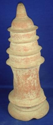 | Description / विवरण | Coarse terracotta stupa with circular projections from the top, almost at regular intervals and of some circumference. Below these projections is a long plain surface and below that again one circular projection and then comes the flat circular base. The object is hollow from inside and tapering from bottom towards top. The top resembles to finial of stupa. |