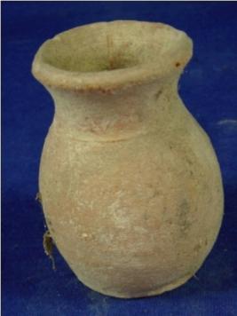 | Description / विवरण | Terracotta vessel - pitcher having a drum shaped body with a flat circular base. The rim is thick, averted and mouth is narrow. |