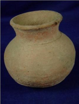 | Description / विवरण | Terracotta pitcher with flat narrow base, round body, high neck with thin rim. Wheel marks are seen on its base. |