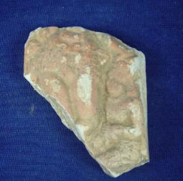| Description / विवरण | Lime human figurine in low relief, with more than one figure is depicted. The left figurine is shown with portion of leg and cloth is rapped around her waist. In another, depiction is shown comparatively shorter. This depiction has beautifully tied hair and also have earring. There is depiction of male seated figure on right side of the main deity. |