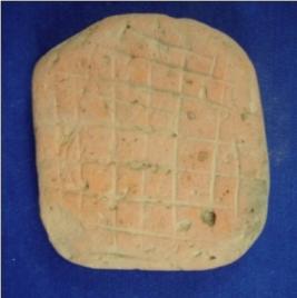 | Description / विवरण | Flat and rectangular, terracotta tablet with incised block designs on one face, while the other face is plain. The edges are rounded. At one side, the edges are more worn out than the other. |