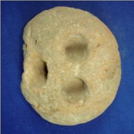 | Description / विवरण | Unidentified object with three large holes at one face, probably to hold it. Part of the rim is broken. The surface are rough. |