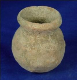 | Description / विवरण | Terracotta pot with circular flat base, round body, low neck and thick rim and open mouth. Its outer surface is slightly rough. |