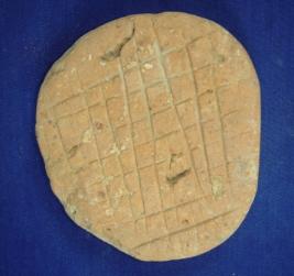 | Description / विवरण | Terracotta Disc circular in shape. One surface has some incised line designs and other surface is plain. |