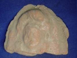 | Description / विवरण | Terracotta human figurine, only the head is seen, on low relief. The head gear is seen but whole facial features are not prominent. |