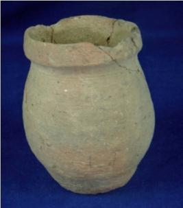 | Description / विवरण | Terracotta vessel, which may be pot, having broad mouth and thick averted rim. Close striation marks are seen on the surface with flat circular base. |