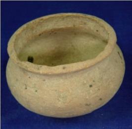 | Description / विवरण | Terracotta vessel - pot having round body, flat circular base, wide mouth with very low neck and thick averted rim. |